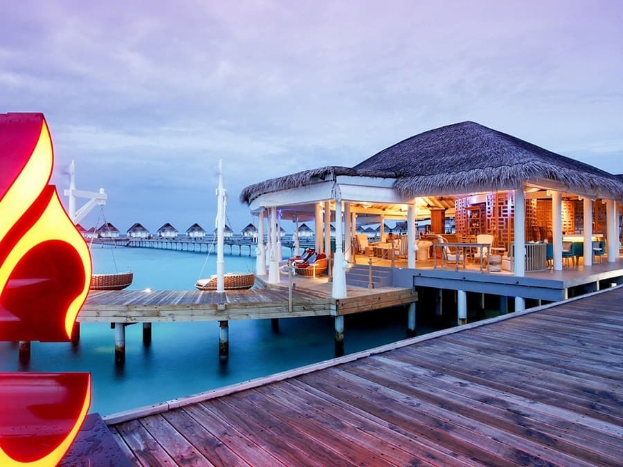 在这里可以品尝着丰富的世界自助美食,同时还享受马尔代夫绝美的海景。